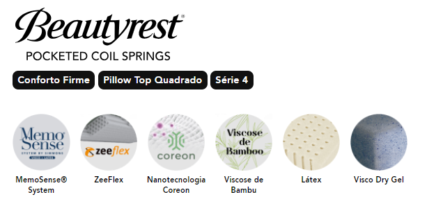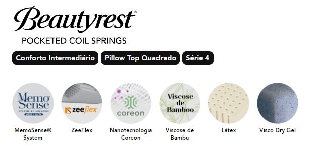 O molejo Beautyrest Evo é a evolução das molas ensacadas. O seu desenho inovador com 23 cm de altura e espessura de 2mm do aço é incomparável.