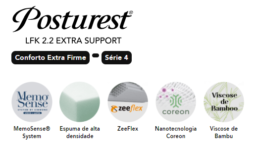 A Coleção Simmons Bamboo Origem buscou inspiração na natureza para trazer as mais avançadas tecnologias do sono. Malha naturalmente hipoalergênica de toque macio e aveludado, com fios de linho integrado com a original Viscose de Bambu e inovador tratamento Coreon – nanotecnologia que neutraliza a energia estática do corpo trazendo a sensação de pisar na terra e assim proporciona alívio do estresse corporal. O sistema MemoSense no tampo propicia alívio dos pontos de pressão corporal e pensando no suporte extra firme para uma melhor postura durante uma noite de sono, a Simmons desenvolveu as molas Posturest LFK 2.2 com mais firmeza, maior resistência e durabilidade. Ideal para suportar mais peso e pessoas praticantes de esportes que possuem estilo de vida saudável e prezam por uma boa postura. Possui ainda ZeeFlex na parte inferior, que reduz o impacto ambiental em 12%. Toda essa composição tem um objetivo principal: um sono mais profundo e relaxante para você.