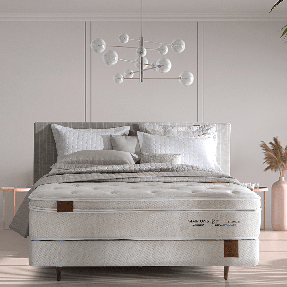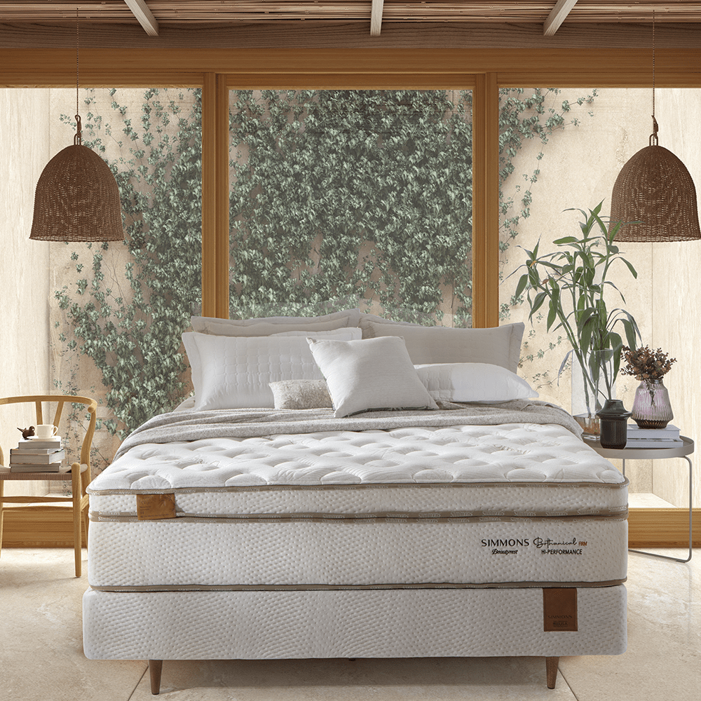 A Coleção Simmons Bamboo Origem buscou inspiração na natureza para trazer as mais avançadas tecnologias do sono. Malha naturalmente hipoalergênica de toque macio e aveludado, com fios de linho integrado com a original Viscose de Bambu e inovador tratamento Coreon – nanotecnologia que neutraliza a energia estática do corpo trazendo a sensação de pisar na terra e assim proporciona alívio do estresse corporal. O sistema MemoSense no tampo propicia alívio dos pontos de pressão corporal e as Molas Beautyrest que suportam até 180kg por pessoa, complementam esse sistema de alta performance. Possui ainda ZeeFlex na parte inferior, que reduz o impacto ambiental em 12%. Toda essa composição tem um objetivo principal: um sono mais profundo e relaxante para você.